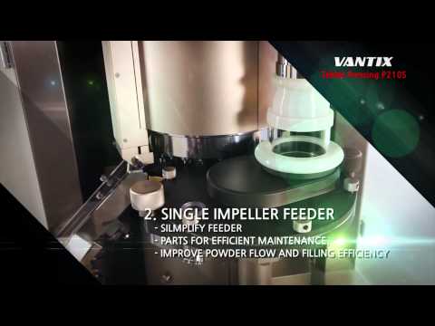 Pokročilé funkce zahrnují systém výměny disků typu věžička pro rychlou a snadnou změnu formy dávkovače, a jediný podavač oběžného kola, který zjednodušuje čištění a údržbu, zlepšuje tok prášku, zvyšuje účinnost plnění a tím zlepšuje propustnost.